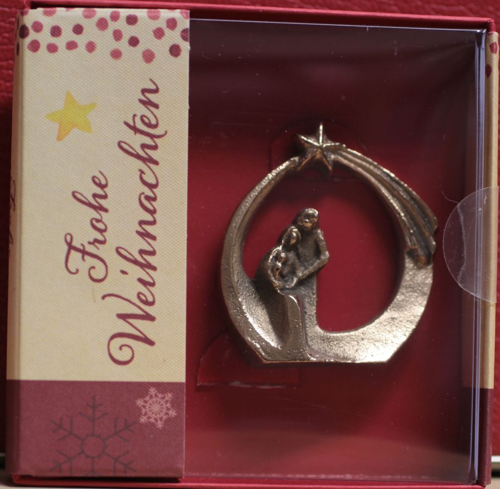 Krippe mit Stern modern. Mini-Stehkrippe 4,3 x 4 cm in Geschenkverpackung; Bronze; Klosterverlag Maria Laach; 16,95 €